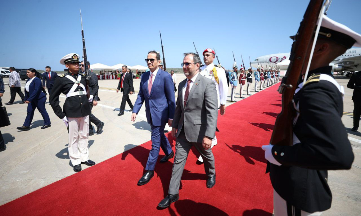 El canciller venezolano, Yván Gil, recibe en el Aeropuerto Internacional “Simón Bolívar” de Maiquetía al Primer ministro de Qatar, Mohammed bin Abdulrahman Al Thani para cumplir una amplia agenda de trabajo que busca potenciar y fortalecer las relaciones Diplomáticas de Paz entre ambas naciones.